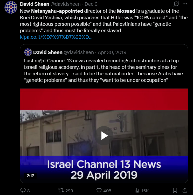 403hr2DropBear in palestine @lemmy.mlAs one of the comments puts it:https://cdn.theblower.au/media_attachments/files/115/704/738/875/029/400/original/2c1708eeaa8bac21.pngAs one of the comments puts it: "Israelis are embracing their inner Nazis." @palestine@lemmy.ml @palestine@fedibird.com #CrimesAgainstHumanity #WarCrimes #genocide #Israel