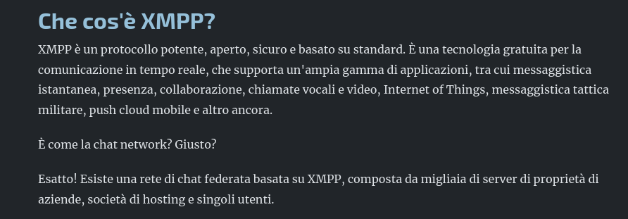 Interessante. Ogni tanto seguo la chat xmpp-it