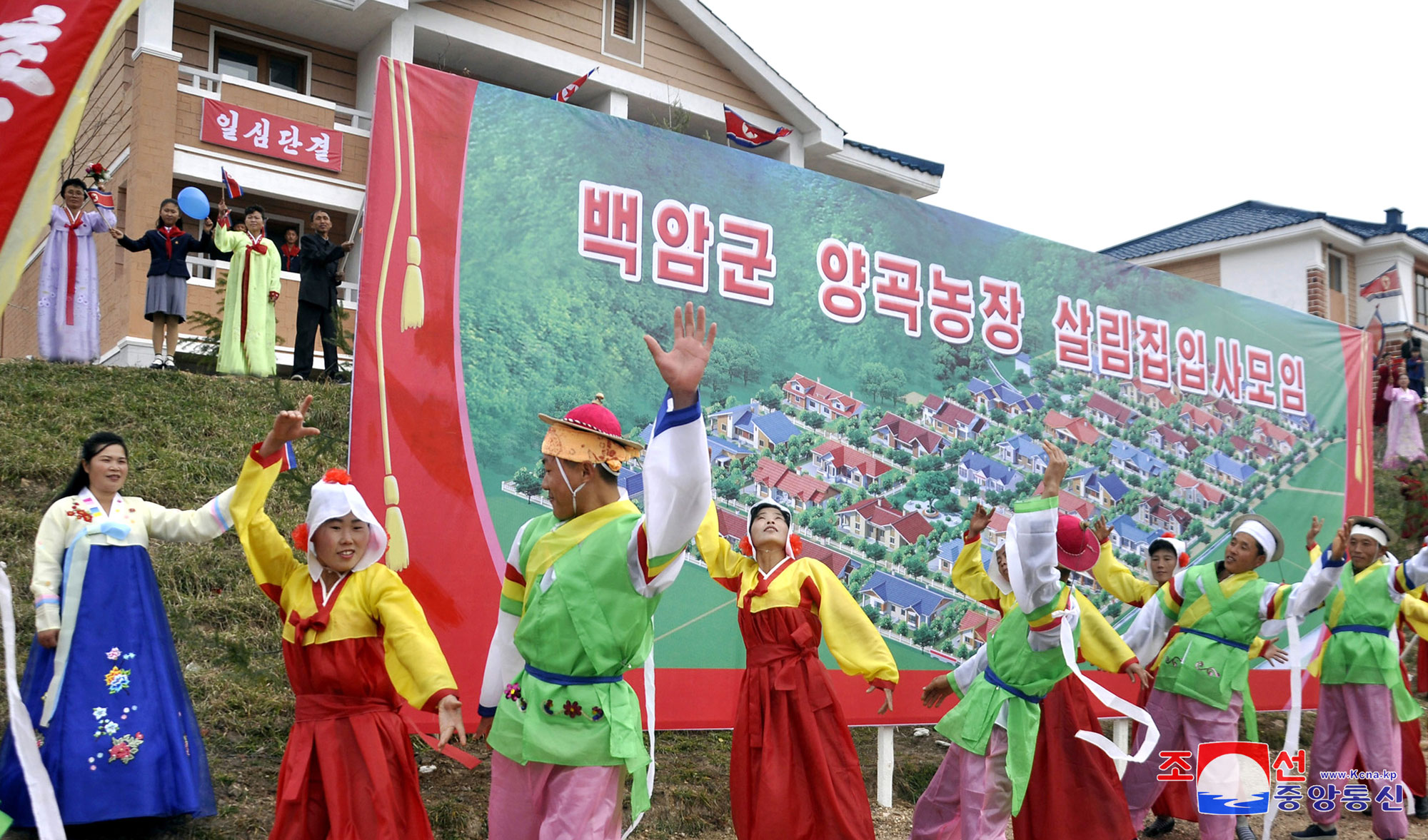 Under the wise leadership of the Party, the construction of 50,000 flats proceeded on a full scale in the capital city of Pyongyang and that of modern rural houses in all parts of the country.